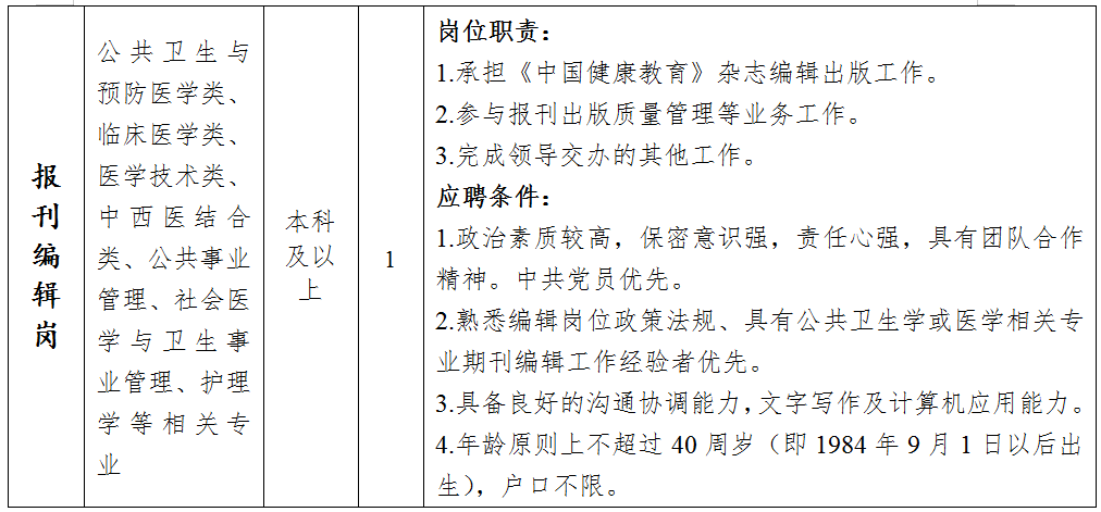中国健康教育中心关于2025年编外聘用人员公开招聘的公告